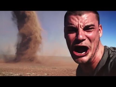 海外の竜巻映像です!クレイジーな男性が、竜巻に近づき、自撮り写真を撮ろうとするが、その竜巻に巻き込まれ、あわや死にそうになってしまう衝撃映像です!見ている方もハラハラドキドキしてしまう迫力!